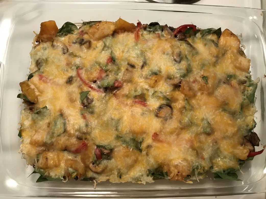 Ein mit Gemüse gefüllter Auflauf, der käsig, würzig und köstlich ist!