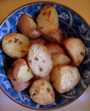 Einfache im Ofen geröstete Kartoffeln mit viel Knoblauch und frischen Kräutern.