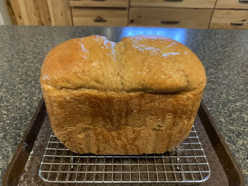 Dies ist ein Rezept für die Zojirushi Brotmaschine, das ich von BreadBeckers erhalten habe. Es ergibt einen großartigen Laib, schön weich im Inneren und eine gute Menge Scheiben. Viel Spaß!