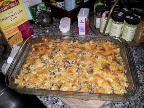 Leckerer GF-Auflauf - der Fett- und Kaloriengehalt kann durch die Verwendung von fettarmen Zutaten gesenkt werden. Nur 96 Kalorien pro Tasse mit diesem Rezept.