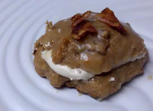 Ich habe diese für meinen Mann und seine Kollegen erfunden. Sie lieben Speck in Süßigkeiten! Es ist meine Variante von Whoopie Pies, bei der jeder Keks halbiert wird, anstatt sie zu stapeln.