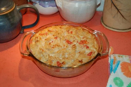 Dies ist eines meiner eigenen Rezepte. Es soll eine Beilage sein - eine Portion von einer Tasse - einfach weil es kalorienreich ist und mit 9,8 Gramm Fett, nun, ich denke nicht, dass man diese Zahl wirklich verdoppeln möchte! Servieren mit einem großen und köstlichen Gartensalat und einer kleinen Portion Hähnchenbrust und man hat eine großartige Mahlzeit.