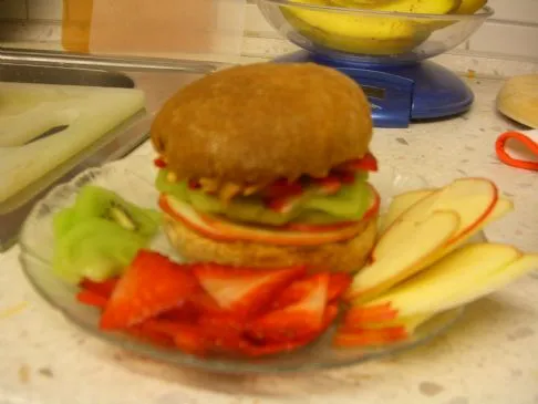 Dies ist ein wenig schwer für eine Diät, aber es ist sehr gesund und hält meinen jugendlichen Sportler bis zum Mittagessen.
