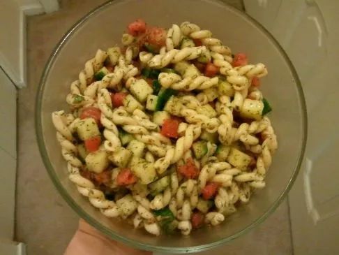Nudelsalat mit Tomaten und Gurken