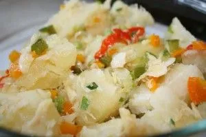 Dies ist die karibische Trinidad-Version und wird normalerweise mit Hähnchen oder Tomaten mit gesalzenem Fisch serviert.