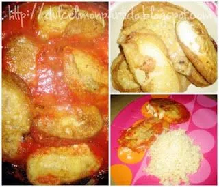 Chayote oder Guisquil gefüllt mit Käse, in Ei gehüllt und dann frittiert, schließlich mit Tomatensauce übergossen.