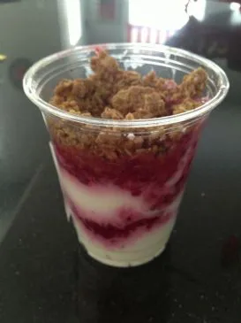 Ein köstliches, proteinreiches Frühstück oder Snack aus Joghurt, Himbeeren, Hüttenkäse und Granola. So gut wie jedes Dessert!