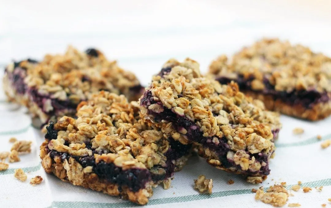 Hafer-Crumble-Riegel mit gemischter Beerenmarmelade