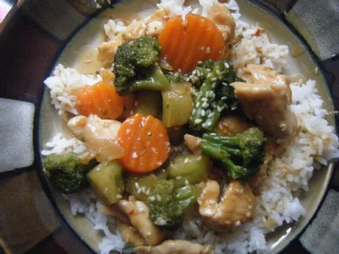 Sehr gutes Rezept, das sehr nach den Restaurants schmeckt, aber gesünder ist. Sehr einfach! Die Nährwertangaben beinhalten 1/2 Tasse gekochten Reis pro Portion.