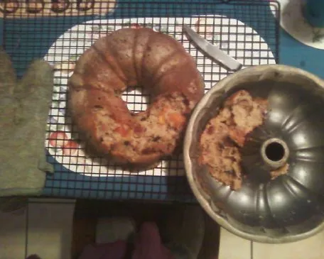Dichter, leckerer Kuchen gefüllt mit gewürztem Trockenfrüchten.