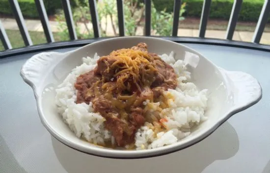 Alltägliches Mittagessen in Belize. Ich habe die Nährwertangaben von verpackten Zutaten aus den USA verwendet, um eines meiner Lieblingsgerichte aus Belize nachzukochen.
