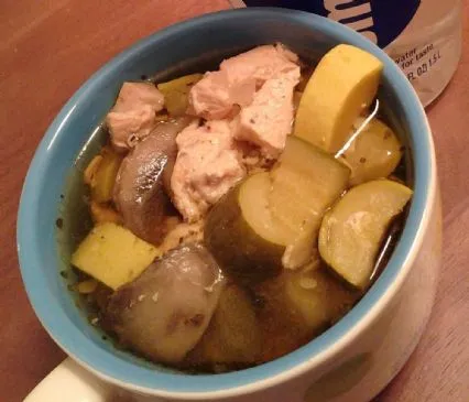 Hühnchen-, Pilz- und Kürbissuppe