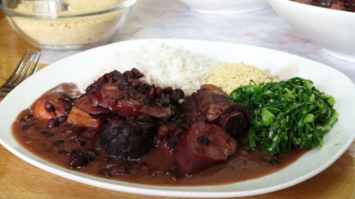 Traditionelles brasilianisches Gericht, das mit weißem Reis serviert wird (+ sautiertes Grünkohl, wenn gewünscht).