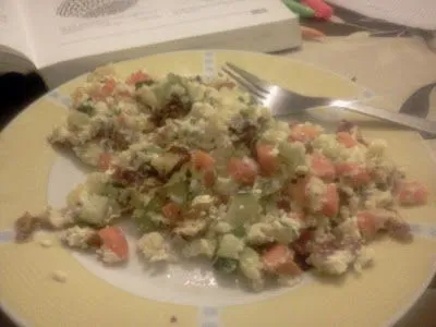 3C, weil es Sellerie, Zucchini und Karotte enthält. Mein Omelette ist beim Servieren zerfallen. Ich hatte ein paar Reste und habe sie zusammengeworfen. Das Ergebnis wollte ich teilen :)