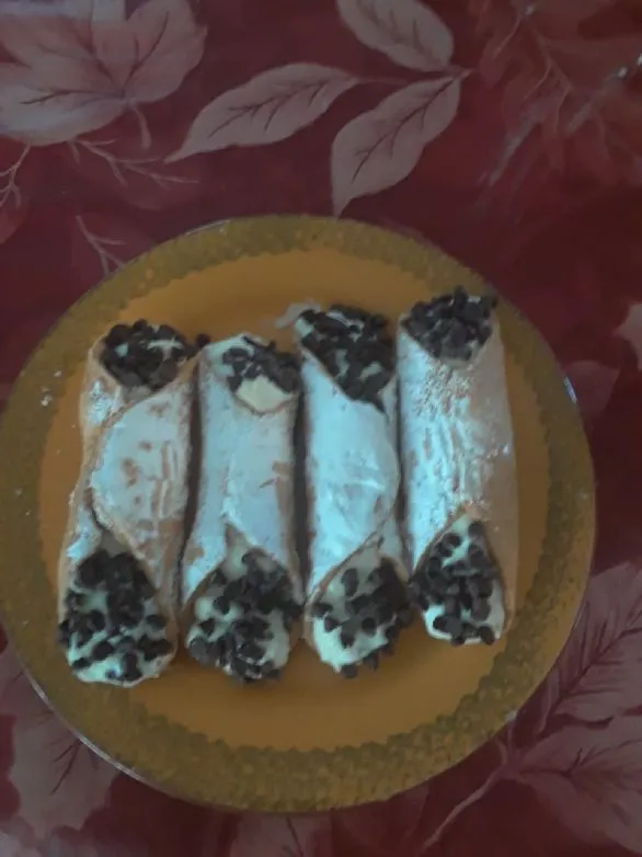 Hausgemachte leckere Minz-Cannoli mit Mini-Schokoladenstückchen!