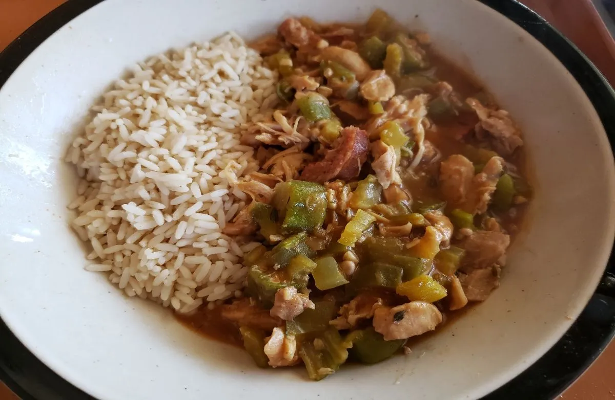 Der Schlüssel zum Geschmack ist die Zubereitung des trockenen dunklen Roux. Siehe den Tipps-Bereich zur Vorbereitung.