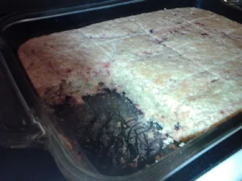 Ein quadratischer Snack wie Haferflocken mit einem Hauch von Blaubeeren. Ideal für den Morgen oder als Snack am Nachmittag!