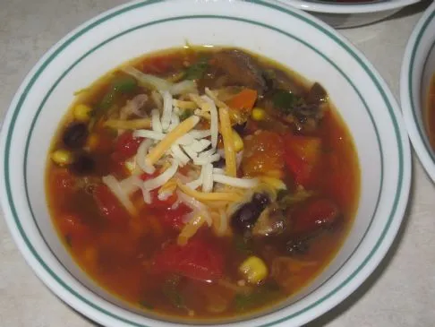 Schwarze-Bohnensuppe, vollgepackt mit Gemüse - milde Salsa.