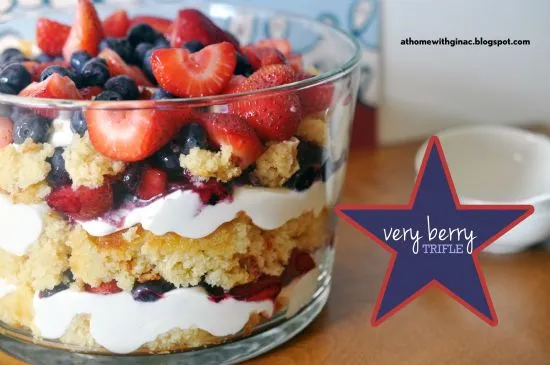 Ein glutenfreier, zuckerreduzierter Trifle mit einem zitroneninfundierten Kuchen aus Mandelmehl und süß gerösteten Beeren.