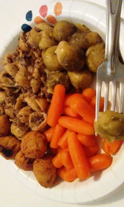 Rinderhack in einer sehr leichten cremigen Stroganoff-Sauce mit mittleren Muschelnudeln! Mit ein paar guten Gemüsebeilagen servieren, um die Kohlenhydrate auszugleichen!