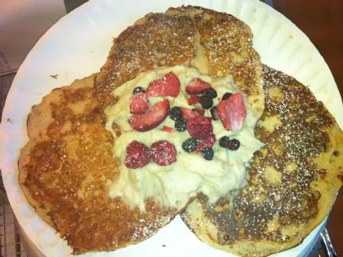 Ein tolles, schnelles und einfaches Frühstück! Mit viel frischem Obst und Puderzucker und/oder Ahornsirup servieren.