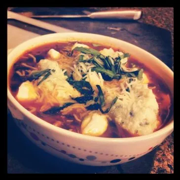 Ich war heute krank zu Hause und während ich meine Krankheitsprobleme auf Pinterest durchstöberte, überlegte ich, ob ich zur Arbeit gehen würde, fand ich dieses Bild von Lasagna-Suppe. Aber das Rezept (obwohl sehr nett und einfach) klang für mich nicht nach "LASAGNE"... tatsächlich fehlte der Schlüsselteil eines guten, schmelzenden Schichtgerichts... der Ricotta und der frische Mozzarella! Dann dachte ich an ein anderes Rezept, das in diesem Monat in Bon Appetit für Ricotta Gnudi und Pomodoro-Sauce vorgestellt wurde, und dieses Rezept wurde geboren... ein warmes Gericht voller Lasagne-Aromen, das perfekt war, um meinen Körper und meine Seele zu wärmen.