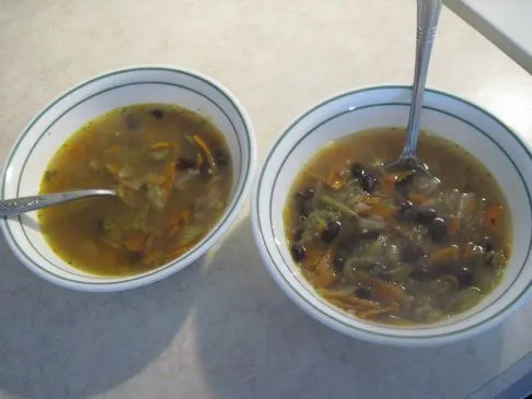 Zwiebel-Gemüse-Schwarze-Bohnen-Suppe