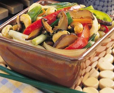 Hähnchen-Pfannengericht mit Gemüse für eine sättigende, weniger fettige Mahlzeit, die natriumärmer ist als traditionelles chinesisches Pfannengericht.