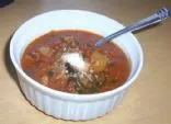 Eine Suppe voller Geschmackstiefe und herzhaften Genusses. Dies ist meine Version der Auberginenlasagne, die in eine Suppe verwandelt wurde.