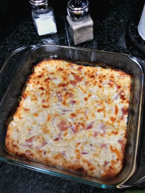 Ich genieße Calzone, möchte aber keinen Teig, also bereite ich nur die 'Füllung' zu, backe sie in einer 8"-Form und genieße sie mit einem Tomaten-, Gurken- und Zwiebelsalat.
