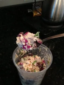 Leichte Chicken Waldorf. Lecker und süß mit Trauben und roter Zwiebel, die einen kleinen Biss hinzufügen. Mit kalorienarmem Weizenbrot, Reiskeksen oder pur genießen.