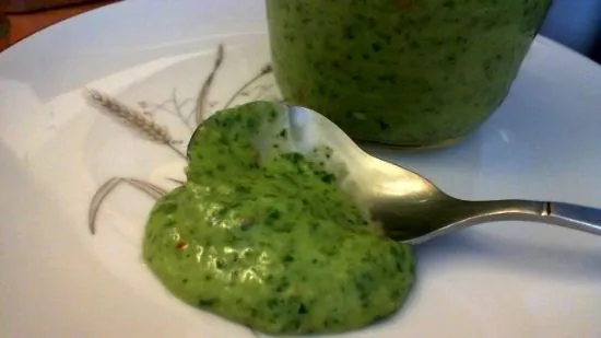 Wir nennen es einfach 'grüne Sauce', weil sie ein Kühlschrankklassiker ist. Aber eigentlich ist es mehr wie ein dickes Dressing... Wir machen das wöchentlich und geben es auf alles! Salate, Reis, Lachs, Bohnen, Wraps, Nachos, was auch immer. Es braucht mindestens 4 Stunden, damit sich die Aromen verbinden... noch besser über Nacht, also Geduld! Man kann es auch als Dip verwenden... einfach Joghurt und Frischkäse hinzufügen!