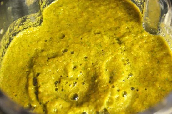 Dies ist sein neues Rezept. Es schließt den Ingwer aus und fügt 1/2 Bund Minze hinzu, aber mein Geschäft hatte keine. Daher wurde dies aus diesem Rezept weggelassen.