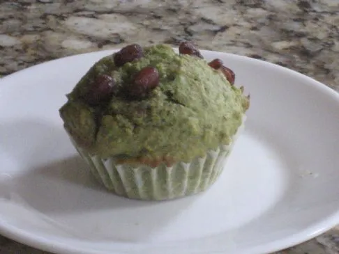 Matcha ist grünes Teepulver, das in Reformhäusern erhältlich ist. Ich habe gesüßte Adzukibohnen darauf gegeben, bevor ich sie in den Ofen geschoben habe, aber man könnte auch Walnüsse verwenden. Wenn man die Bohnen ausprobieren möchte, einfach einige Dosen-Adzukibohnen nehmen, genug, um ein paar auf jeden Muffin zu streuen, 2 EL Wasser und 2 EL Zucker hinzufügen, zum Kochen bringen und 15 Minuten ziehen lassen, damit die Bohnen den Zucker aufnehmen. Diese Bohnen sind in Japan beliebt und werden oft als Paste in Desserts verwendet.