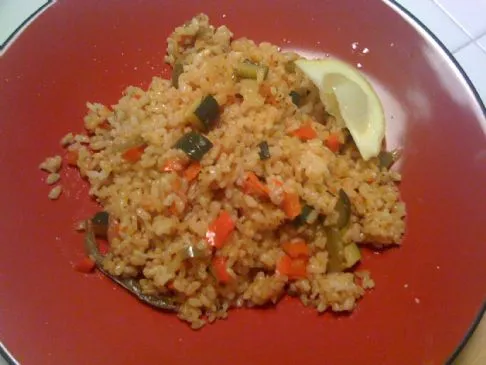 Tomatensuppe mit Hähnchen und braunem Reis