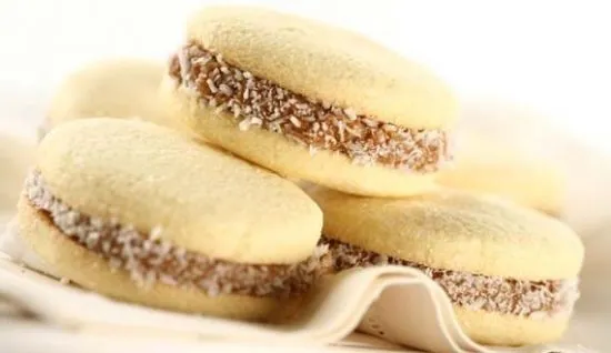 Alfajoresvon PaulH_64Galleta de maicena rellena de dulce de leche y cubierta de Zucker.PartySnacks270 Min