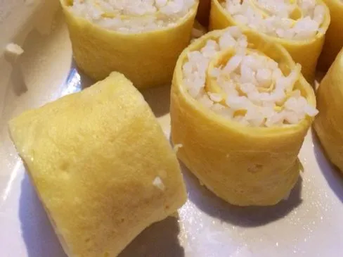 Köstliche Eier- und Reisrollen, ideal zum Frühstück, Mittagessen oder als Snack.