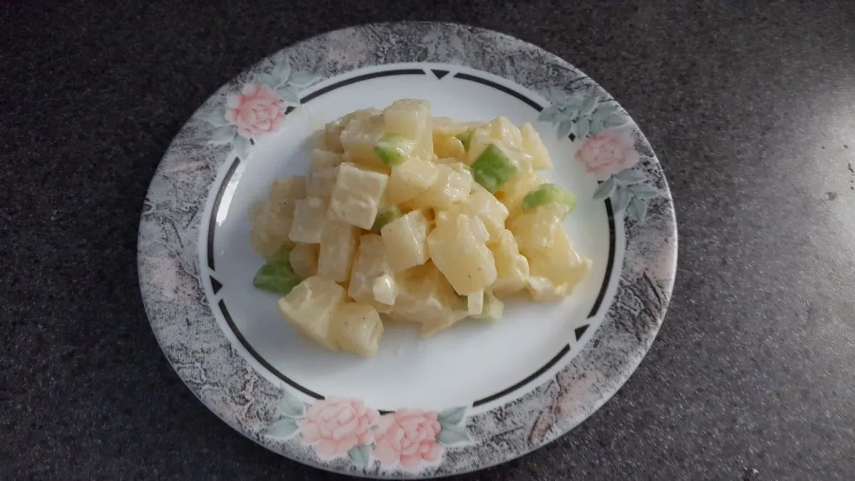 Die Verwendung von Hellman's fettarmer Mayonnaise reduziert viele Kalorien in diesem Kartoffelsalat.
