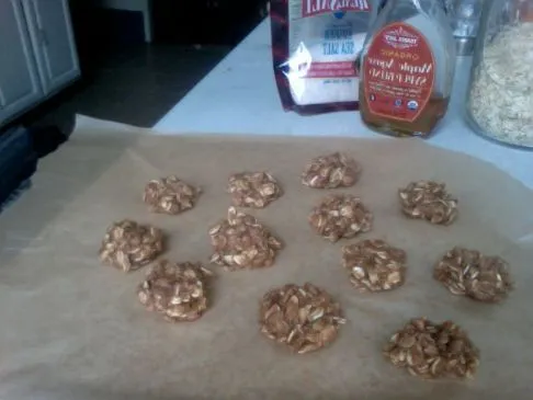 Leckere, gesunde No-Bake-Snackkekse! Auch vegan. Nicht roh, aber ich wette, sie könnten leicht roh gemacht werden. Meine Mutter hat diese früher mit Kokosnuss, Erdnussbutter und Carobstückchen gemacht. Ich stelle mir vor, wie sie in unserer Küche in einem langen ethnischen Rock steht, wenn ich diese mache :) Lustige Hippie.