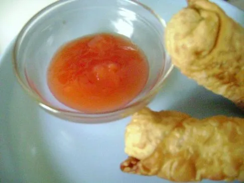 Dies ist eine recht schnelle und schmackhafte süß-sauer-Sauce. Sie wird gerne zu gebackenen Frühlingsrollen serviert.