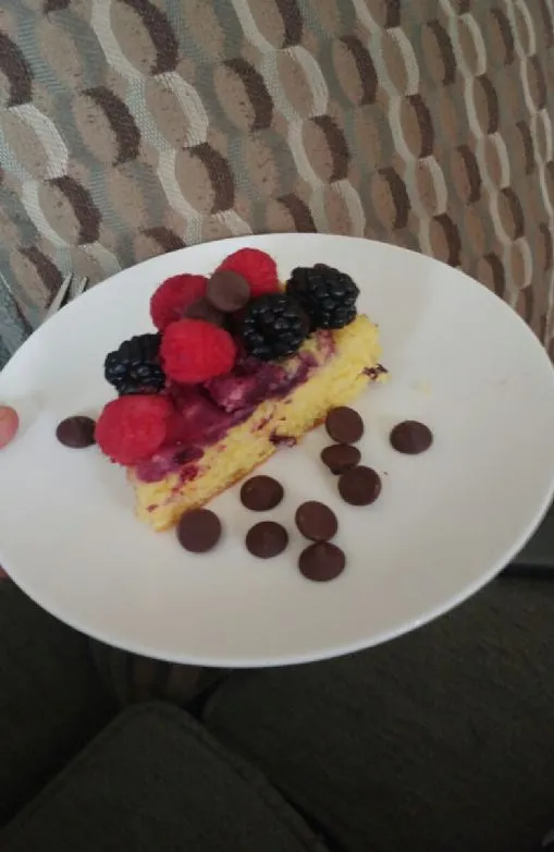 Ein leichter und fluffiger Kuchen mit vielen frischen Beeren! Mit 210 Kalorien pro Portion kann man nicht zu enttäuscht sein.