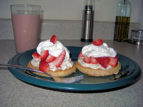 Dies ist ein spezielles Frühstück für uns am Wochenende - schnell und einfach! Manchmal (wie auf dem Bild zu sehen) fügen wir einen Klecks fettfreier Sahne oben drauf hinzu.