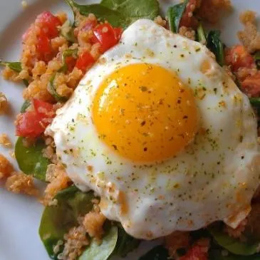Eines meiner LIEBLINGSGERICHTE sind Eier Benedict Florentine! Ich stieß auf ein Rezept mit Quinoa, Spinat und einem Spiegelei. Also ging ich schnell in die Küche, da ich alles zur Hand hatte.