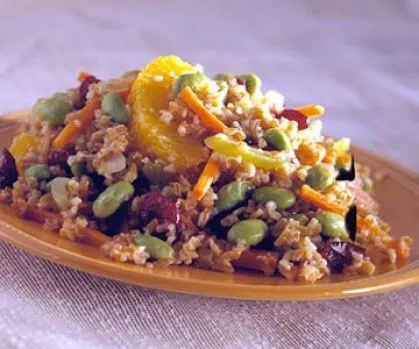 Dieses nahrhafte Rezept ist cholesterinfrei und ein Gericht voller süßer, herzhaftem Geschmack. Der Knoblauchgeschmack harmoniert gut mit der Süße der getrockneten Kirschen und Rosinen, während der Sellerie etwas Knusprigkeit hinzufügt. Dieses schnell zubereitete Rezept eignet sich hervorragend als Beilage, kann aber auch als Hauptgericht serviert werden.