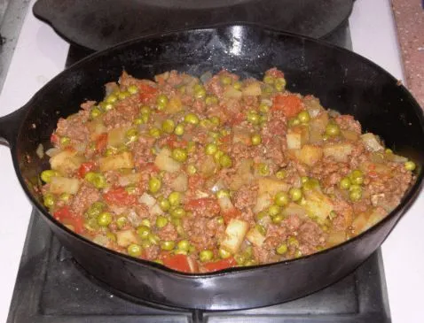 Pakistani Rezept mit Hackfleisch, Kartoffeln und Erbsen in einer aromatischen Currysauce. Ergibt 12 Portionen (ca. 1/2 Tasse).