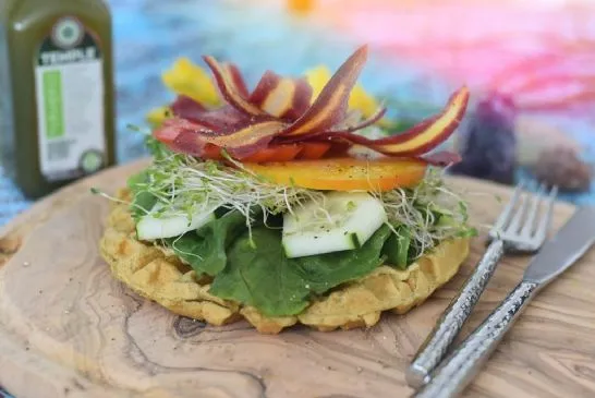 Waffel-Sandwiches. Du solltest sie ausprobieren. Sie sind wie normale Sandwiches, nur dass sie noch köstlicher sind, weil sie Waffeln sind.