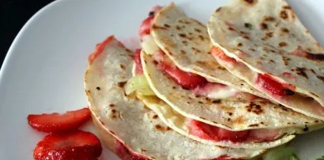 Schnell, einfach und köstlich. Ideal zum Frühstück oder als Snack. Variationen - andere Beeren oder Früchte, den Käse durch Erdnussbutter ersetzen.