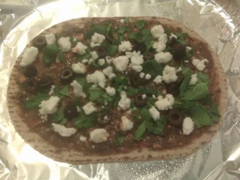 Fladenbrot-Pizza mit Spinat, Oliven, Knoblauch