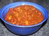 Dieses Chili esse ich gerne über Reis mit Bananenpaprika.