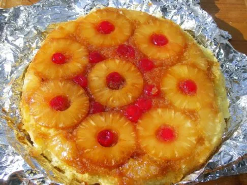 Der Ananas-Kuchen ist eine Rückkehr in die 1920er Jahre. Eine Zeit, in der Dosenananas sehr beliebt waren. Ein Blick auf diesen Kuchen zeigt, warum er so beliebt war. Es sind schöne, glänzende Scheiben süßer und klebriger karamelisierter Ananas, die glücklich auf einem fluffigen gelben Kuchen sitzen. Ein Ananas-Kuchen verlangt danach, warm aus dem Ofen serviert zu werden, mit oder ohne einen Klecks sanft geschlagener Sahne.